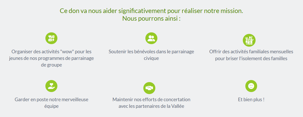 Avec 1000 $, nous pourrons permettre à au moins 5 jeunes de vivre une sortie de fin d'année hors de l'ordinaire avec l'organisme, notamment en couchant à l'extérieur pour une nuit.